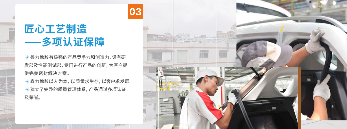 廣州鑫力橡膠制品有限公司(原白云三力橡膠廠)是原屬國(guó)營(yíng)白云經(jīng)貿(mào)社的下屬單位,歷經(jīng)多次體制及股份改革,產(chǎn)品轉(zhuǎn)型升級(jí)成為集設(shè)計(jì),研發(fā),生產(chǎn)為一體的生產(chǎn)廠家,我們的產(chǎn)品應(yīng)用范圍十分廣泛,適用于:汽車領(lǐng)域,軌道交通領(lǐng)域,建筑門窗領(lǐng)域,家具門業(yè)領(lǐng)域,航運(yùn)領(lǐng)域,新能源領(lǐng)域,電器,機(jī)柜,機(jī)械等行業(yè)密封系統(tǒng)產(chǎn)品開發(fā)及生產(chǎn)。